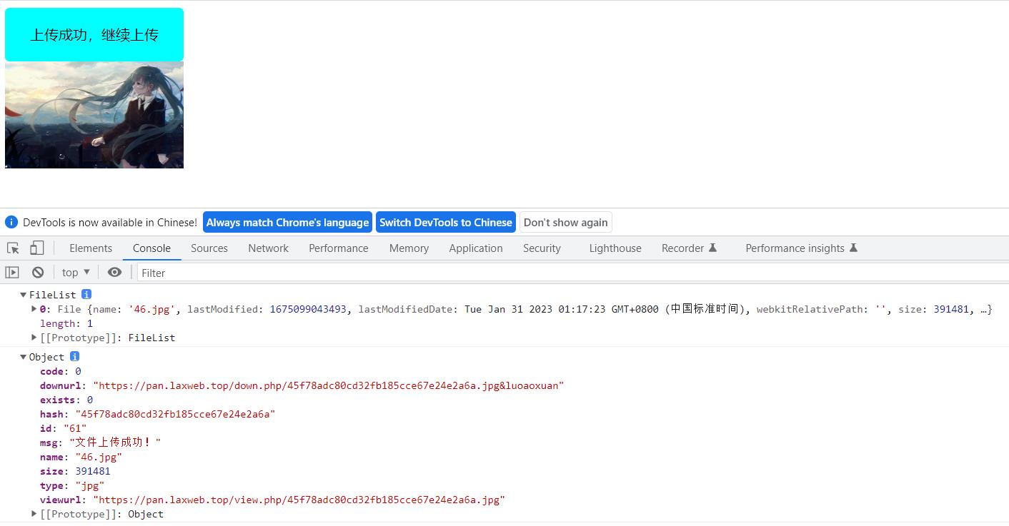 pic.src = data.viewurl; // 根据自己图床的返回链接展示图片