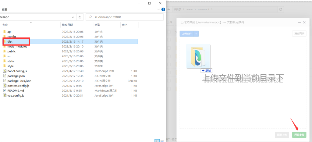 (2)将打包后生成的dist文件上传到宝塔文件