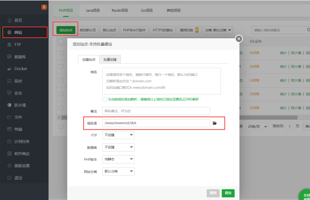 (3)在宝塔上添加网站站点
